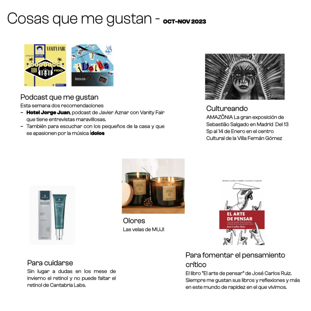 Sin más, domingo, planificando la última semana del mes de noviembre espero que os gusten mis recomendaciones y os deseo una gran semana.